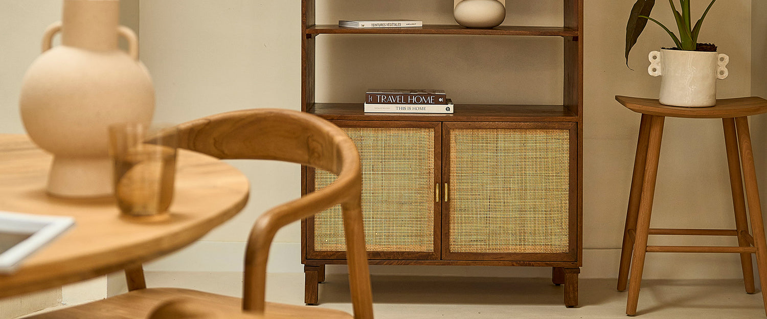 Le cannage est la touche lumineuse de la collection RAPHAEL. Le cannage diffuse une lumière douce et apaisante, créant une ambiance qui vous fait dire "ah, je suis bien à la maison". Il ajoute cette touche de tendresse dans un espace où l'élégance et l’authenticité règnent en maître.