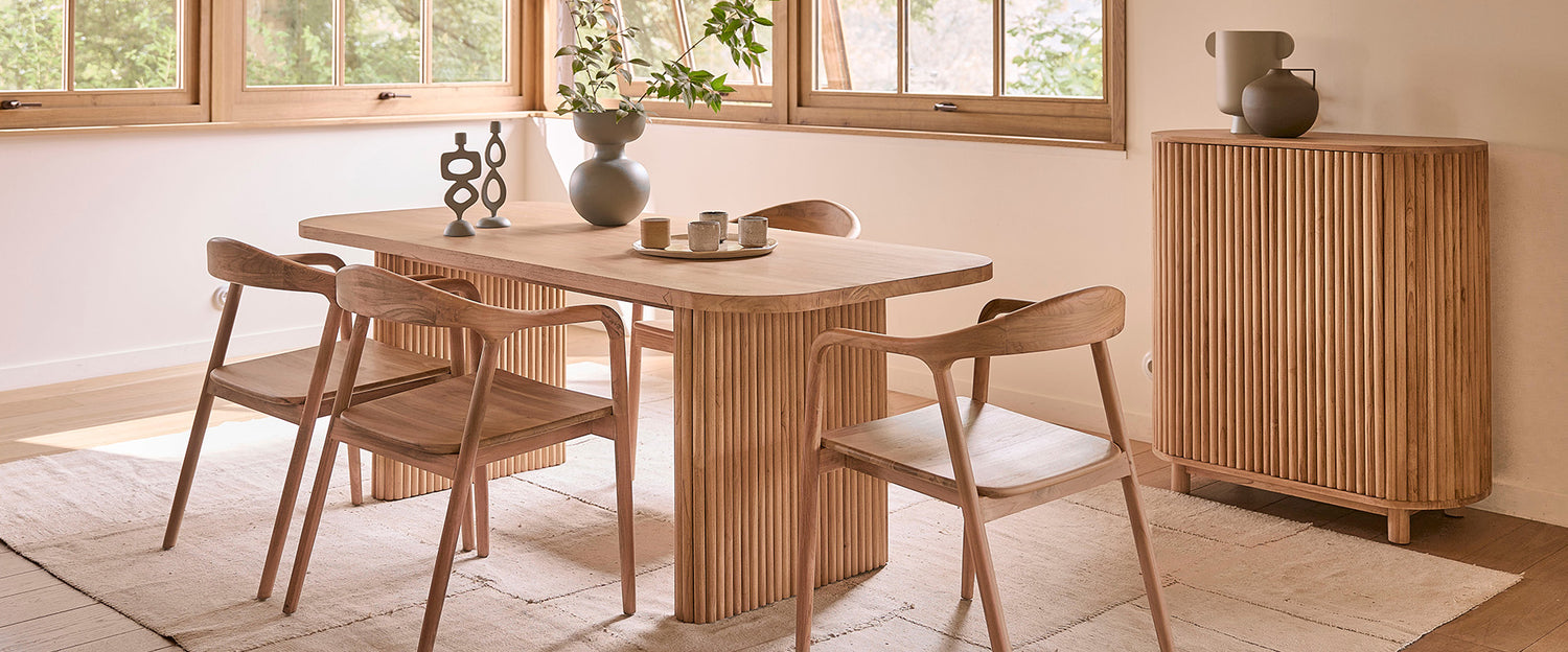 Inspirée par la joie de vivre et l'amour du rire, cette collection en teck brut sait comment égayer votre espace. Chaque chaise et tabouret de la collection AMBRE raconte une histoire d'authenticité et de convivialité, créant ainsi une ambiance chaleureuse dans votre salle à manger.
